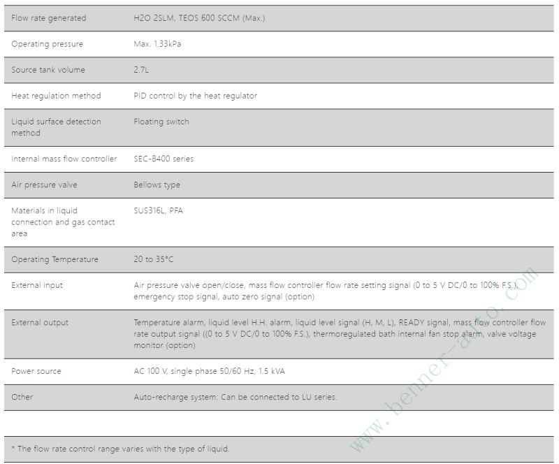 LSC-A100 提供 TEOS 600SCCM 和 H2O 2SLM 等材料的穩定氣化